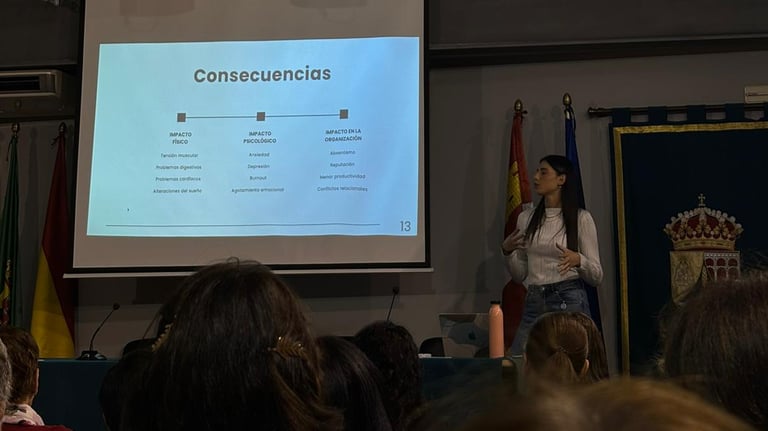 Ponencia en el Ayuntamiento de Valverde del Majano donde abordamos el estrés laboral, sus causas y cómo afecta a la salud mental y al rendimiento profesional. Compartimos estrategias prácticas para gestionar la presión diaria, mejorar el ambiente de trabajo y fomentar un equilibrio saludable entre la vida personal y laboral.